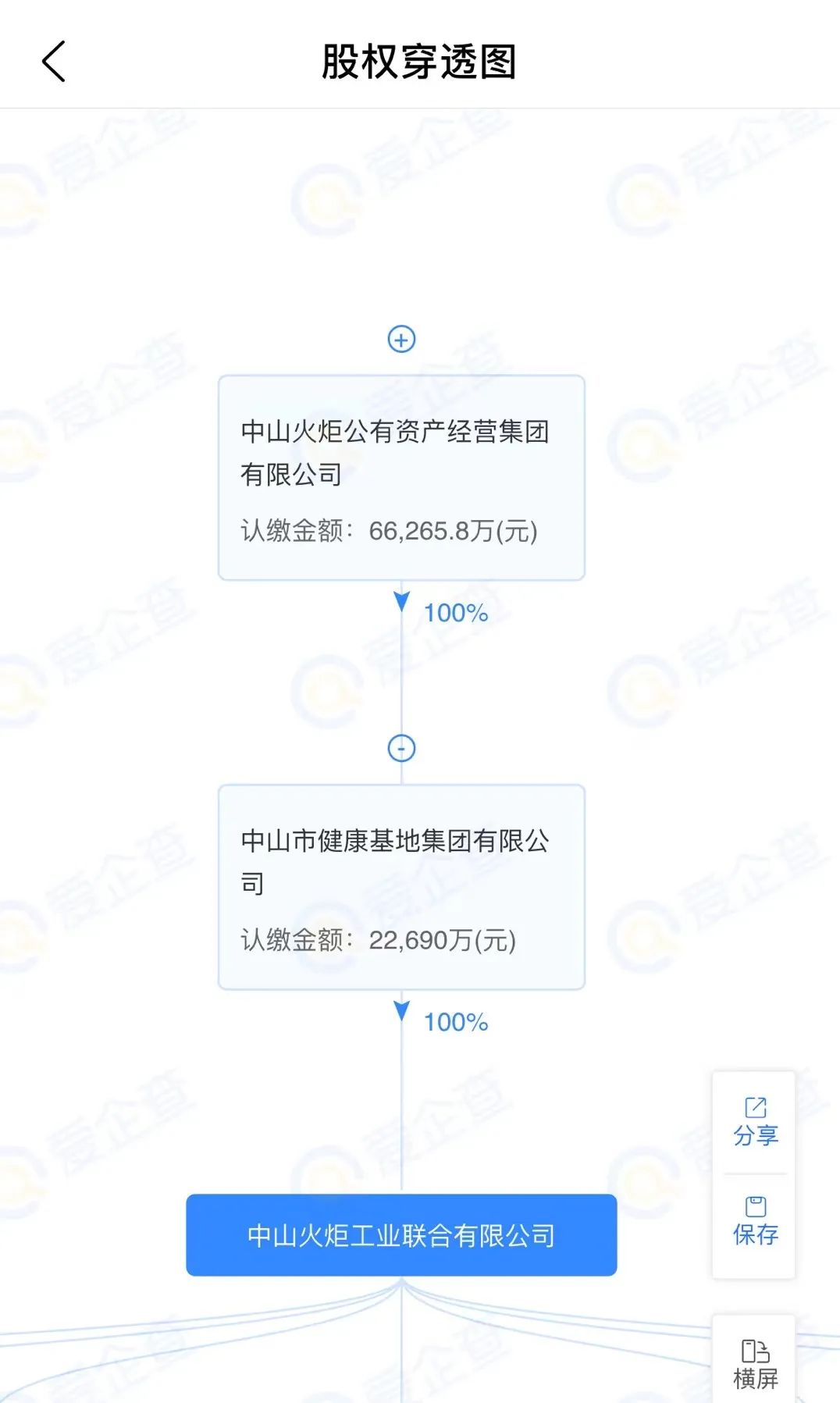 爱企查显示,工业联合公司和火炬集团为兄弟企业,股权穿透后,二者均由中山火炬间接控股,其余四家公司均为火炬集团一致行动人。