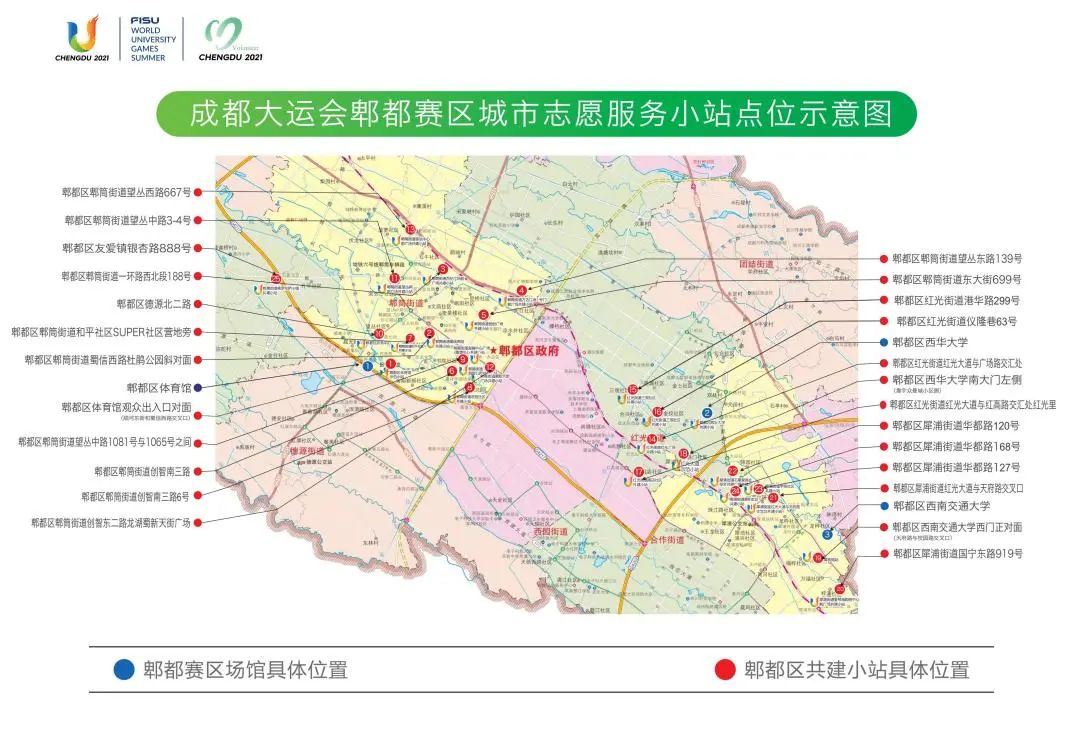 为更好服务大运赛事,提升城市形象,突显区域特色。7月20日,成都大运会郫都赛区25个城市志愿服务小站正式投入运行。