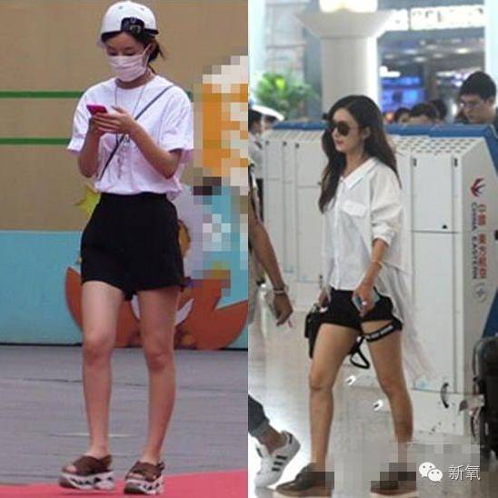 不少街拍都被拍到五五身材,都是短T配短裤,隔壁的大幂幂拍出来是这个效果。