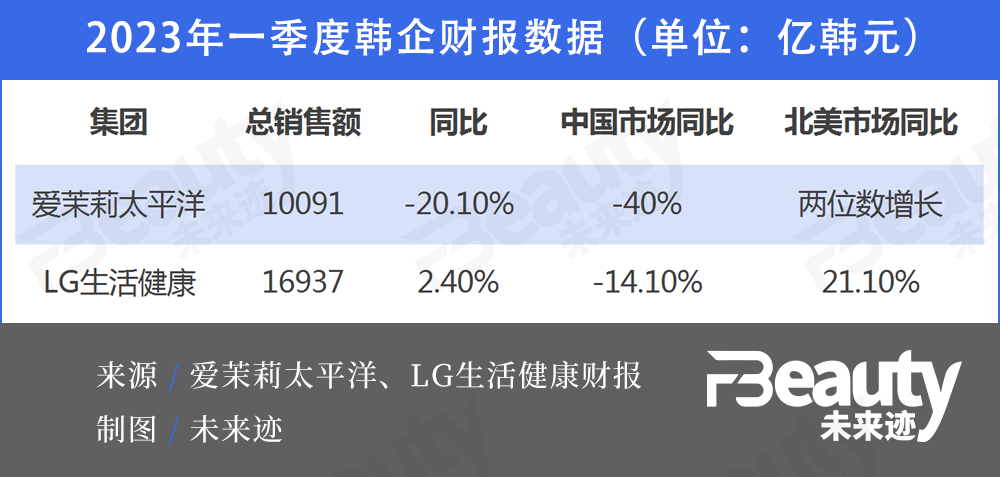 如今,韩妆的北美市场战略已经有了初步成效:在2023年一季度,爱茉莉太平洋与LG生活健康两大巨头在北美市场均录得两位数增长。