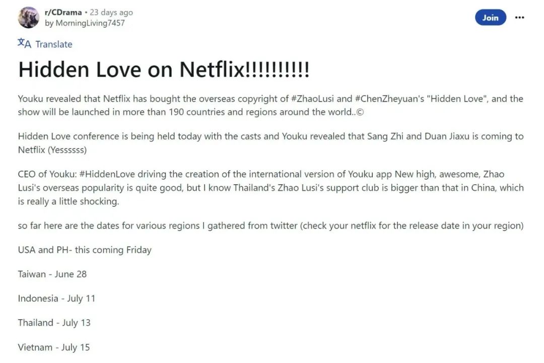 倒是过去两年,类似的C-Drama(即Chinese Drama)热潮随着平台更多将内容放在自己的海外平台上独播,反而限制了其进一步的出圈可能性,双刃剑则是没有围观效应的独播模式也并未显著的带来海外订阅用户提升。