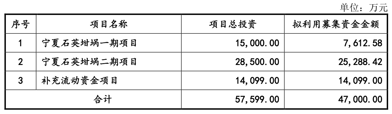 除此外还有欧晶科技(001269.SZ),该公司的主营是石英坩埚产品、硅材料清洗服务、切削液处理服务,2023年前三个月里,收入6.36亿元,实现了1.72亿元的净利润,同比增幅达到292.13%。欧晶科技的可转债项目打算融资4.7亿元,主要目的则是投资宁夏石英坩埚一期、二期项目。