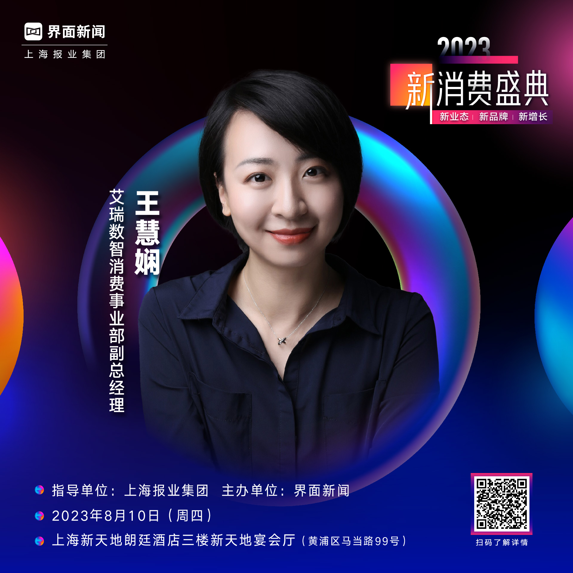 由上海报业集团指导、界面新闻主办的第六届【新消费盛典】将于8月10日于上海新天地朗廷酒店举行。艾瑞数智消费事业部副总经理王慧娴确认出席第六届新消费盛典。