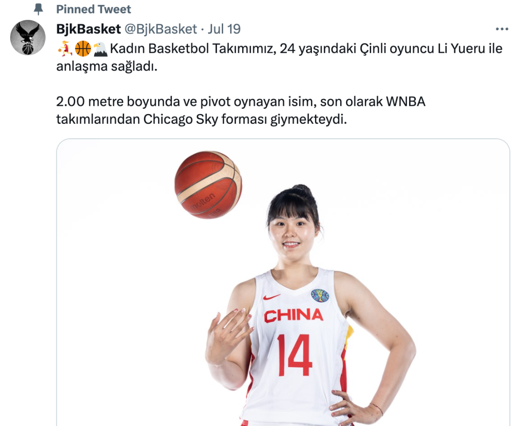 李月汝成为第一位效力贝西克塔斯的中国女篮球员,她也开辟了女篮留洋新的方向。此前,美国女篮名将、有「女乔丹」之称的戴安娜·陶乐西就曾在2011帮助球队获得过土耳其联赛总冠军以及2012年土耳其杯。