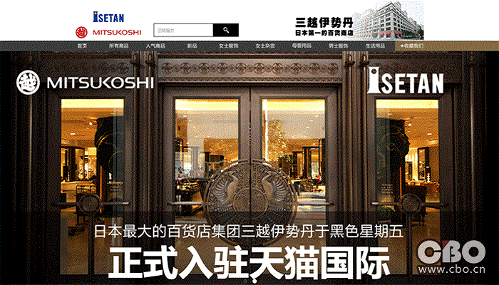 CBO网讯(记者刘珽玉 张慧媛) 11月21日,日本最大百货集团三越伊势丹宣布,将与天猫国际达成独家战略合作,在11月25日 “黑色星期五”开通天猫国际三越伊势丹海外旗舰店,成为首家入驻天猫国际的日本百货公司,这也是三越伊势丹首次跨界进入电商平台。