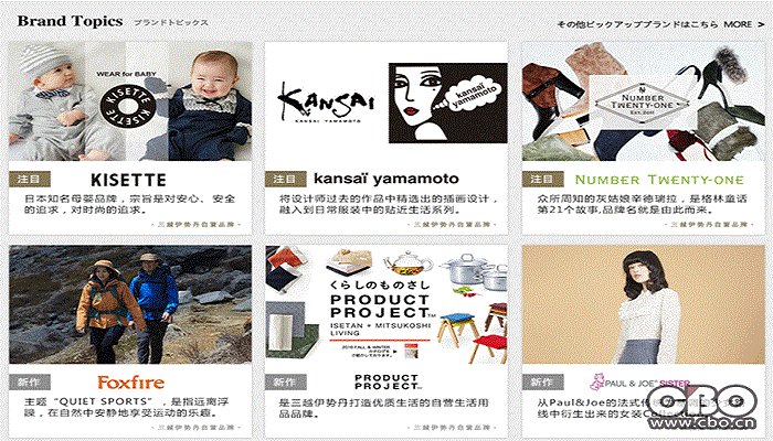 三越伊势丹控股是日本历史最悠久的百货集团之一,在日本有 27 家百货公司,在世界其他地区有 31 间百货,在中国内地有4间伊势丹百货和1间三越百货。从天猫国际三越伊势丹海外旗舰店主页来看,三越伊势丹突出了它的自有品牌,包括母婴品牌KISETTE、少女服饰 Paul & Joe Sister等,覆盖时尚服饰、婴幼儿服饰、杂货、女靴、化妆品、食品及家居用品等上百个品种。