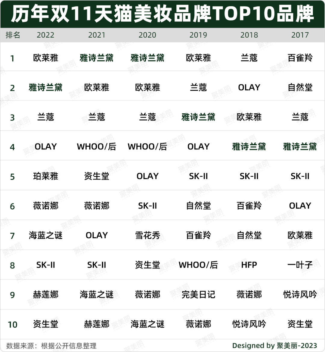 而在竞争激烈且要求高效的社媒时代,稍晚一步的电商投放、达人合作、新营销布局都会让品牌错失良机。这也就让雅诗兰黛面临了因决策周期漫长而产生的问题——发展逐渐落后于“老对手”,2018、2019年的“双11大战”中雅诗兰黛以微弱差距惜败、2021财年雅诗兰黛高端美妆在中国市占率被欧莱雅反超等就是证明。