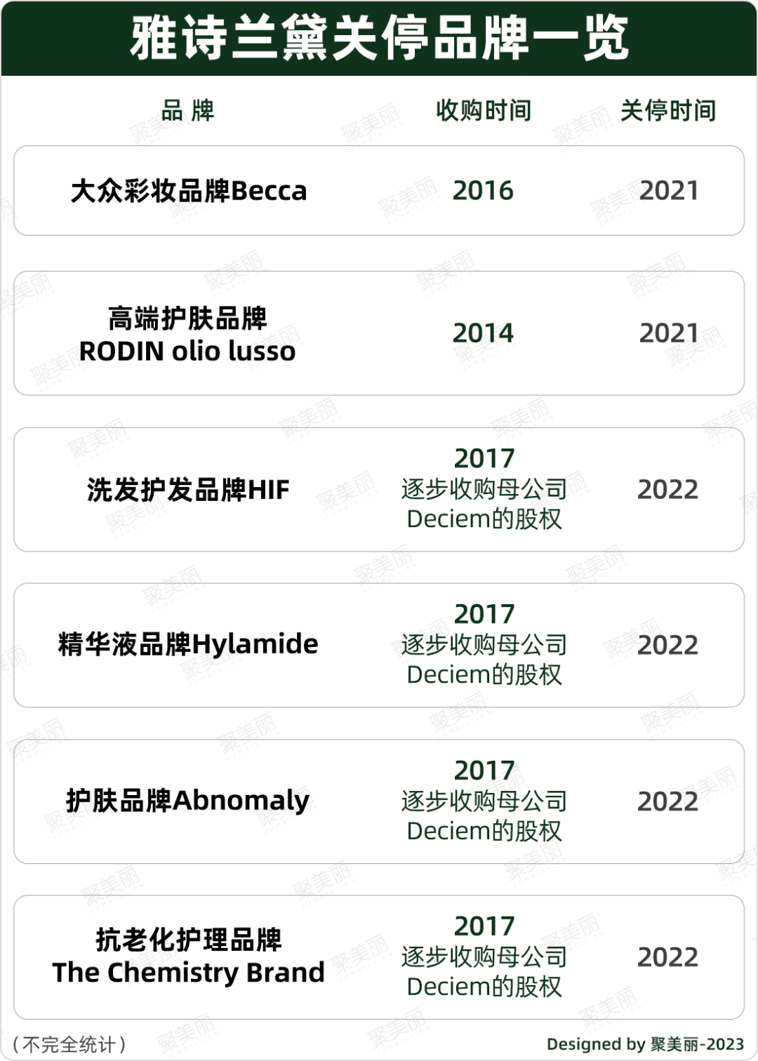 除了Tom Ford外,聚美丽梳理被雅诗兰黛收购的品牌发现,其中有不少品牌,短短几年就面临被宣布关停的境况。