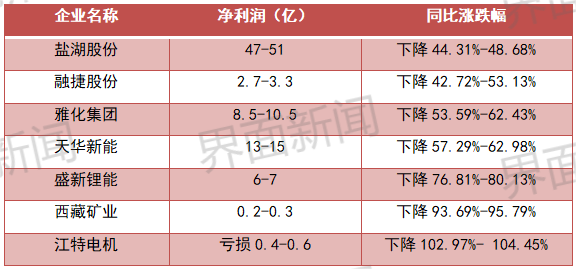 以目前跌幅最大的江特电机(002176.SZ)来看,其上半年由盈转亏,最快亏损额达6000万元。该公司表示,上半年碳酸锂价格持续下跌,因消化前期较高价格外购的锂资源导致锂盐业务亏损。