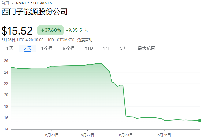 而在西门子事件的发酵下,西门子能源股份有限公司的股价快速下跌。而在A股上市的相关风电企业,也在可靠性担忧情绪的蔓延下,导致了股价在端午节开盘后快速波动。