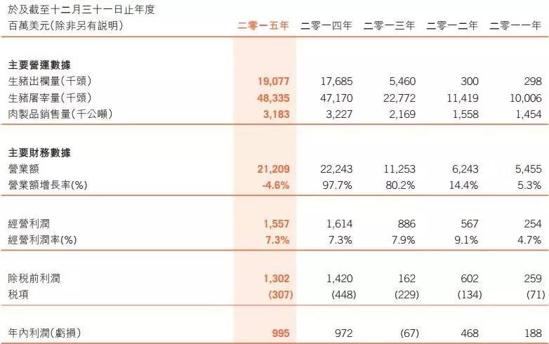 经营业绩方面,在收购时的2013年,SFD的年营收与收入净额分别为132.2亿美元,1.84亿美元;而2014/2015两年,以上两个数字分别为150.3亿美元,5.56亿美元;144.4亿美元,4.52亿美元。可以看到,在收购后的第一个完整年度,SFD即交出一份完美答卷,营收及净利均大幅上涨。当然,这很大程度上归功于2014年美国市场上猪肉价格上涨。2015年的经营业绩虽略有下降,但考虑到当年美国市场猪肉价格跌势明显,这份成绩单某种程度上比2014年更具说服力。