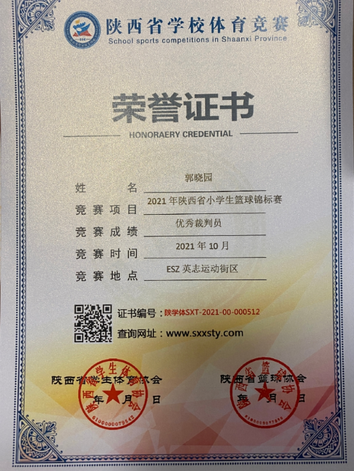 2021年西安市小学生篮球锦标赛优秀裁判员
