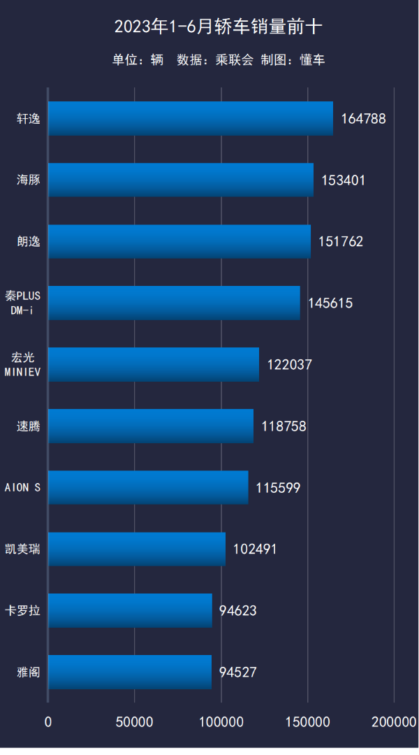 而且,相较于销量并不突出、且尚未盈利的奥迪新能源汽车,朗逸车型的销量一直不错。具体销量方面,过去的6月,朗逸销量位列国内第二,达到了27282辆。上半年,朗逸的销量位列第三名。