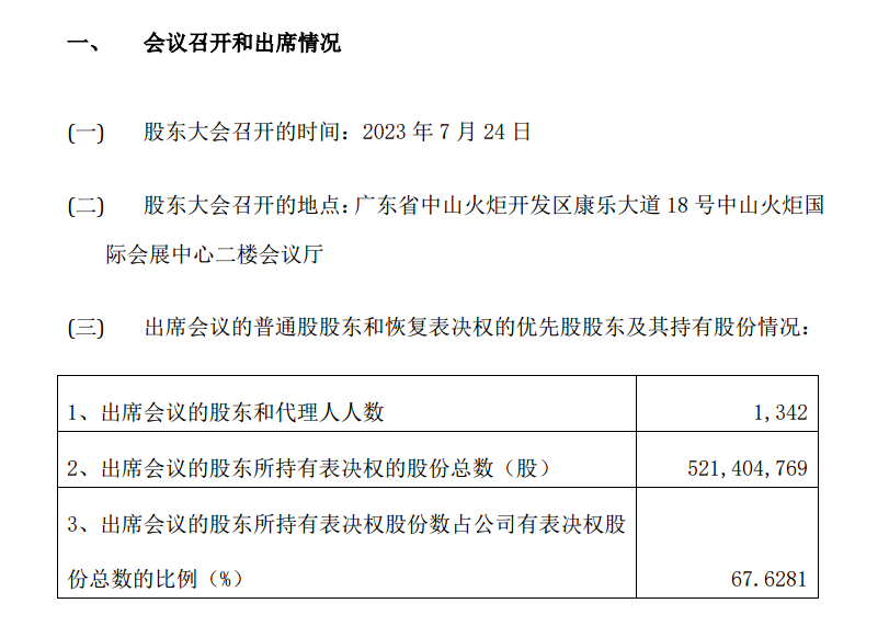 公司公告显示,此次出席的股东和代理人人数为1342人,出席会议的股东所持有表决权股份数占公司有表决权股份总数的比例为67.6281%。