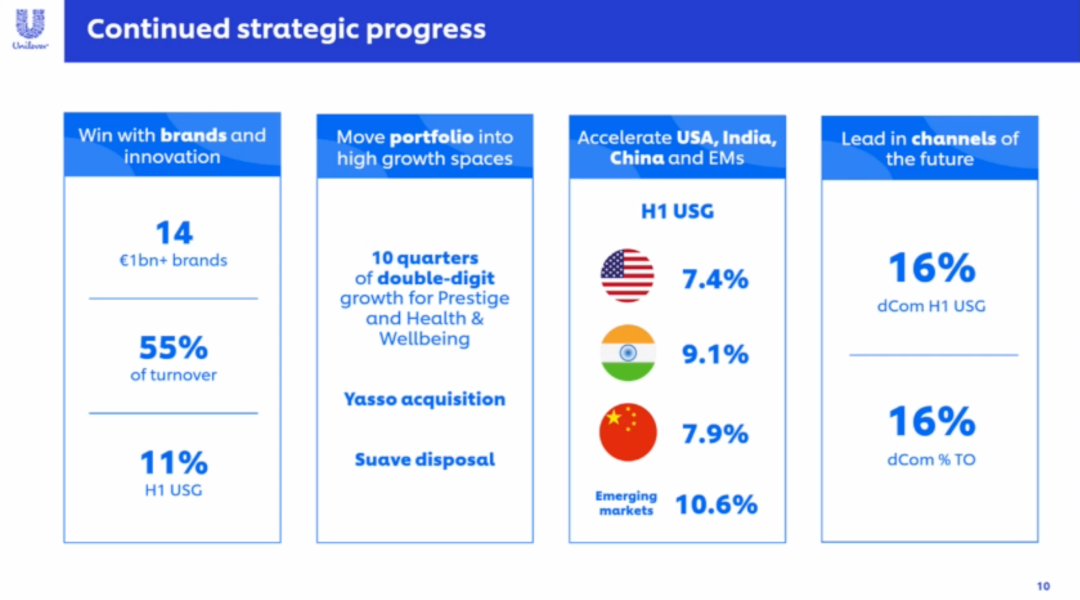 他表示,联合利华上半年的业绩,正凸显了那些吸引其加入该公司的闪光点:无与伦比的全球足迹和影响力、出色的产品和品牌组合,以及才华横溢的人才团队。“加入联合利华以来,我的第一印象和早期经历证实了这些事情。”
