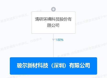 天眼查APP显示,近日,玻尔新材科技(深圳)有限公司成立,法定代表人为刘淑杰,注册资本1000万元,经营范围包含:生态环境材料制造;金属材料销售;生态环境材料销售;环境保护专用设备销售等。天眼查股权穿透显示,该公司由清研环境100%控股。