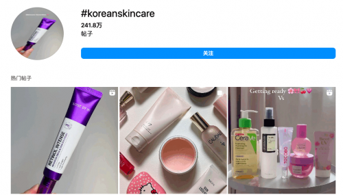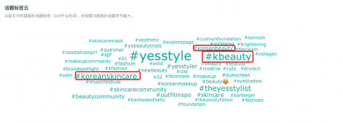 可以发现,除了自身的品牌名之外,其在Instagram帖子中最常使用的话题标签还包括#kbeauty、#koreanskincare等直接与韩流时尚相关的内容。