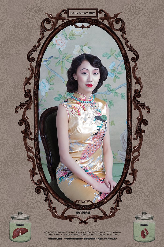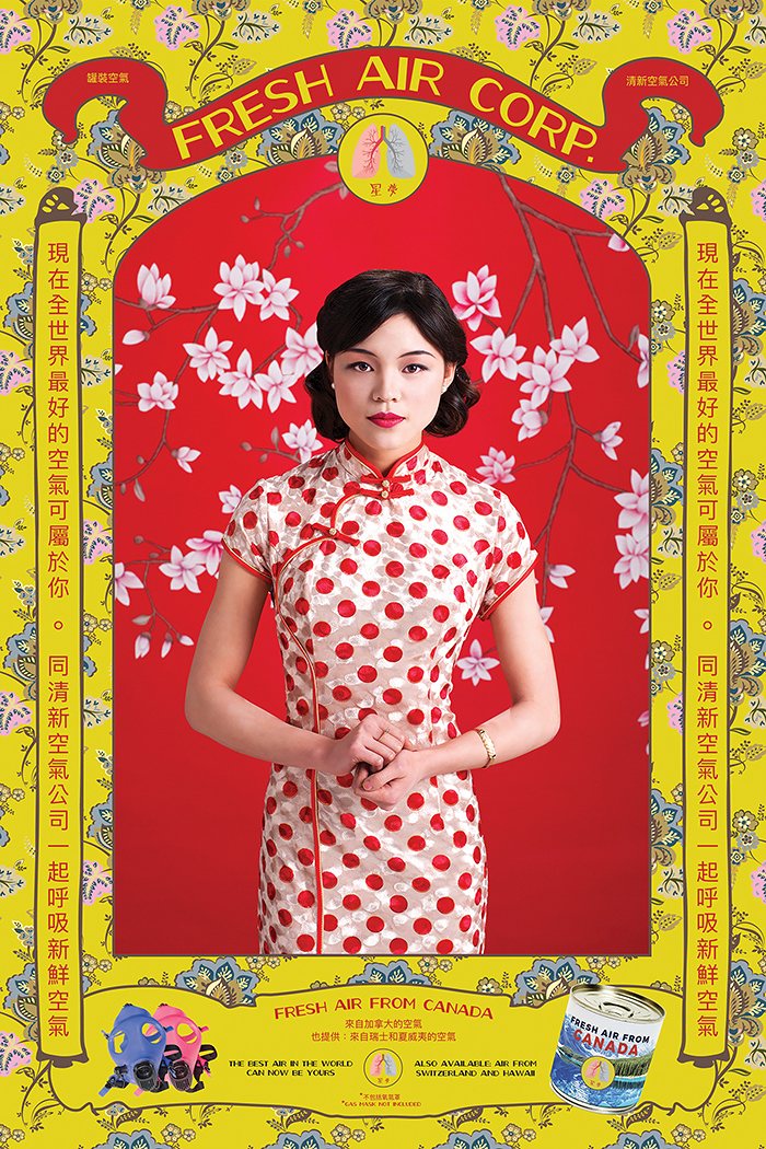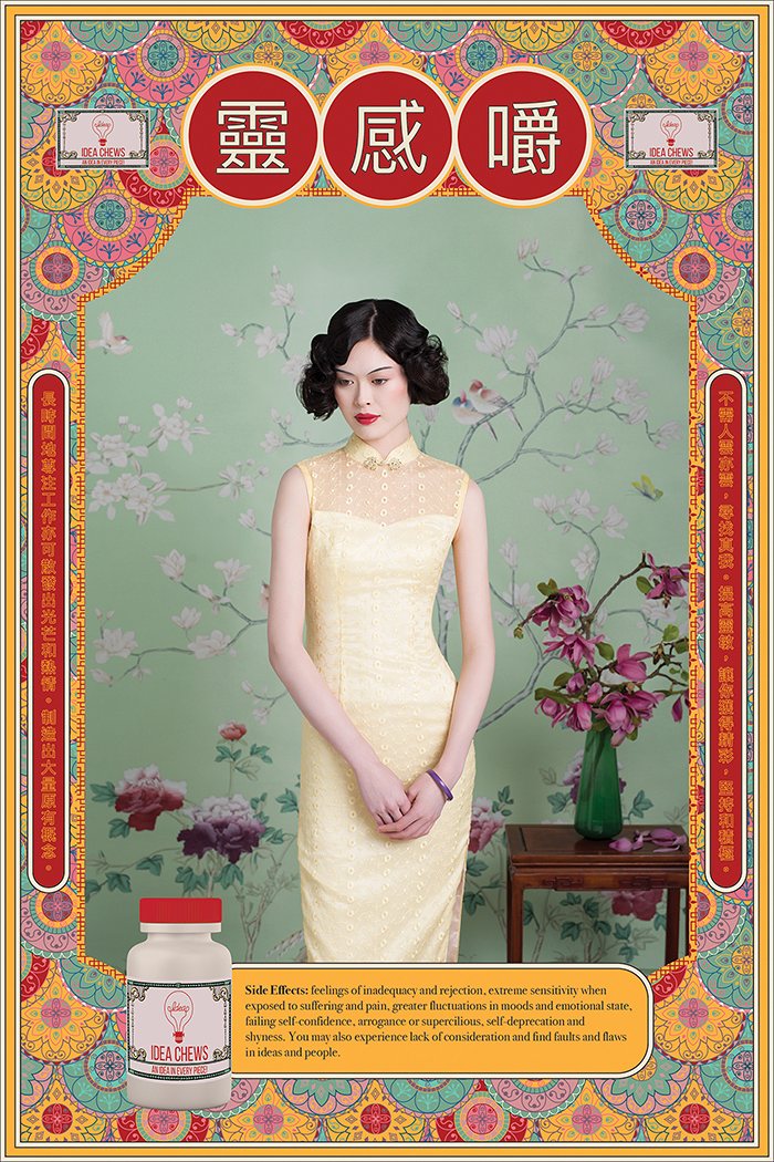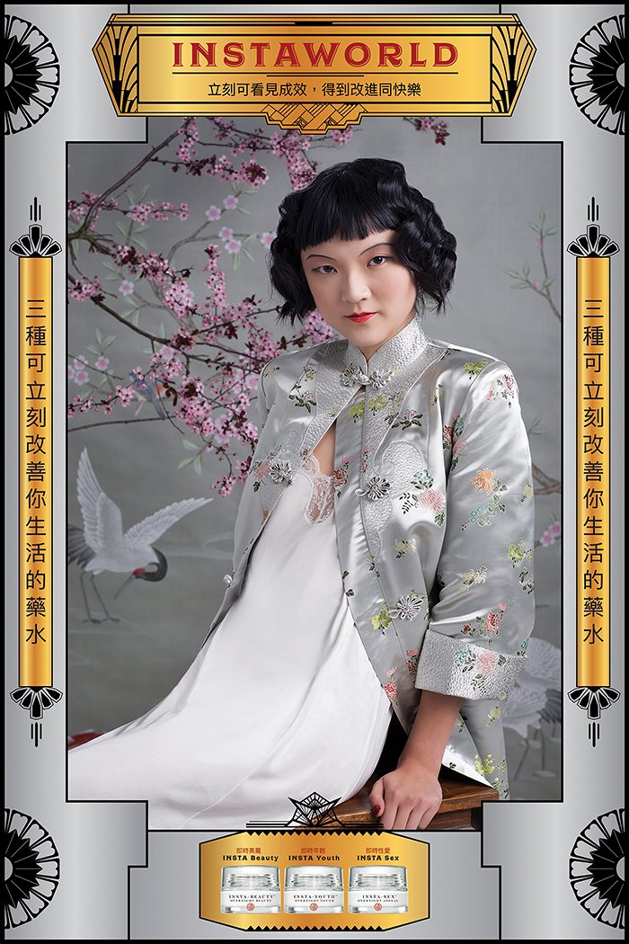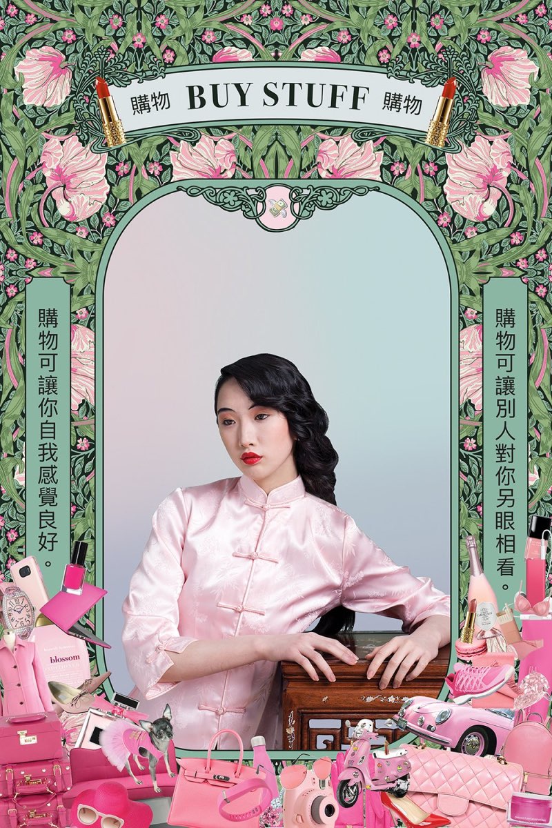 来自加拿大的艺术家Dina Goldstein,最近就以这些老上海的广告画报为灵感来源,找来真人模特拍摄创作了一组荒诞的海报《摩登少女》(Modern Girls)。还是婀娜多姿的女孩子,忧愁或明媚的表情,但是仔细一看她们在用力推销的产品,你可能也跟我一样忍不住笑。
