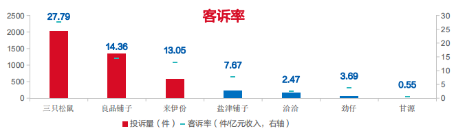 这是因为制造型企业有着更好、更稳定的产品品质,从上市公司数据来看,渠道型的零食企业如三只松鼠、良品铺子的客诉率远远高于制造型企业如洽洽食品、甘源等。