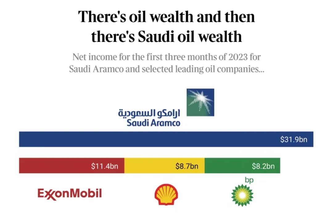 沙特阿拉伯国家石油公司与其他石油巨头的在2023年第一季度的净收入对比 图源:微博