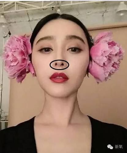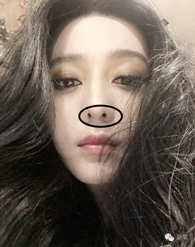 范冰冰正面,鼻孔能自动隐藏,只留出一点点鼻孔来过的痕迹。