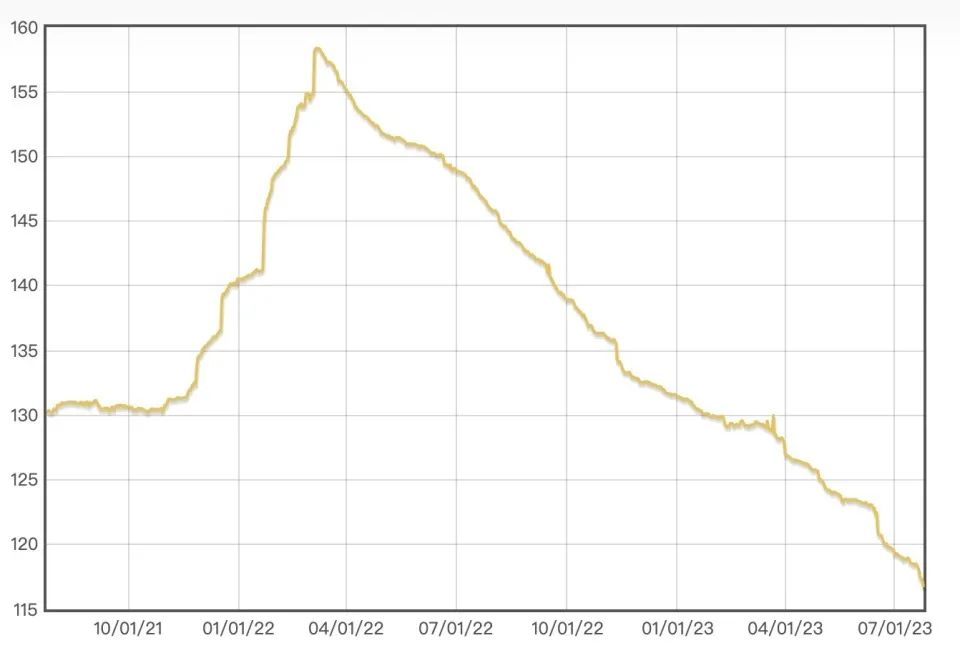 另外,上游毛坯钻石的价格也大幅下滑。国际钻石协会IDEX钻石指数显示,钻石价格指数在2022年3月达到历史高位158.16之后便持续下降。截至2023年7月25日,IDEX钻石指数已跌去26%至116.72。独立钻石行业分析师Paul Zimnisky表示,一颗质量略高于平均水平的1克拉天然钻石售价已从6700美元降至5300美元。