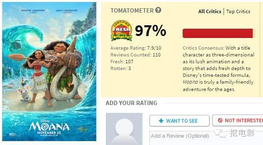 但是另一边,在国内票房并不很理想的《海洋奇缘》,却默默的得到了一致的好口碑。