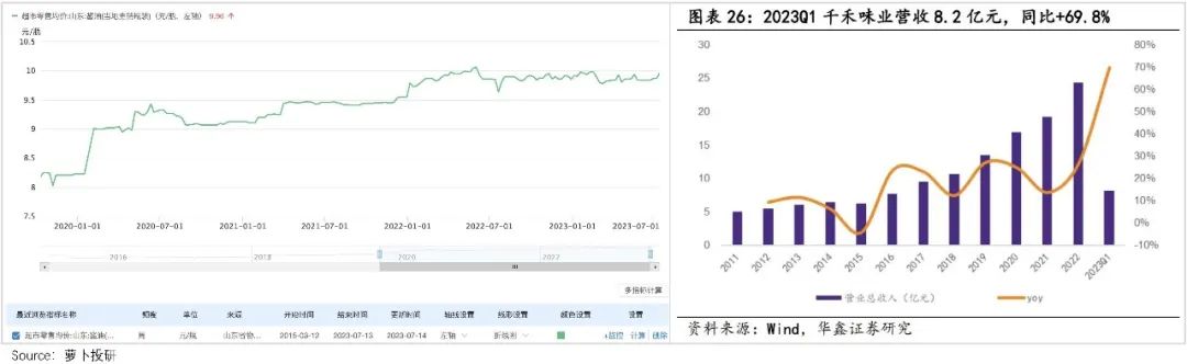 以山东为例,2020年至今酱油的超市零售价从8元涨到近10元,涨幅达25%。主打“零添加”,中高端定位的千禾,也迎来了业绩的大幅增长。