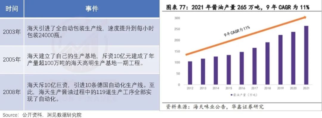 作为最早使用高盐稀态工艺的企业之一,海天酱油力压低盐固态发酵工艺,以品质高、口感醇厚,闯了出来。之后积极营销,在全国范围内打响品牌,需求大爆发。