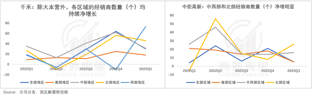 反映在数据上,除西部地区(大本营)外,千禾在各区域的经销商数量均实现正增长,中、北、东部是增长重点。