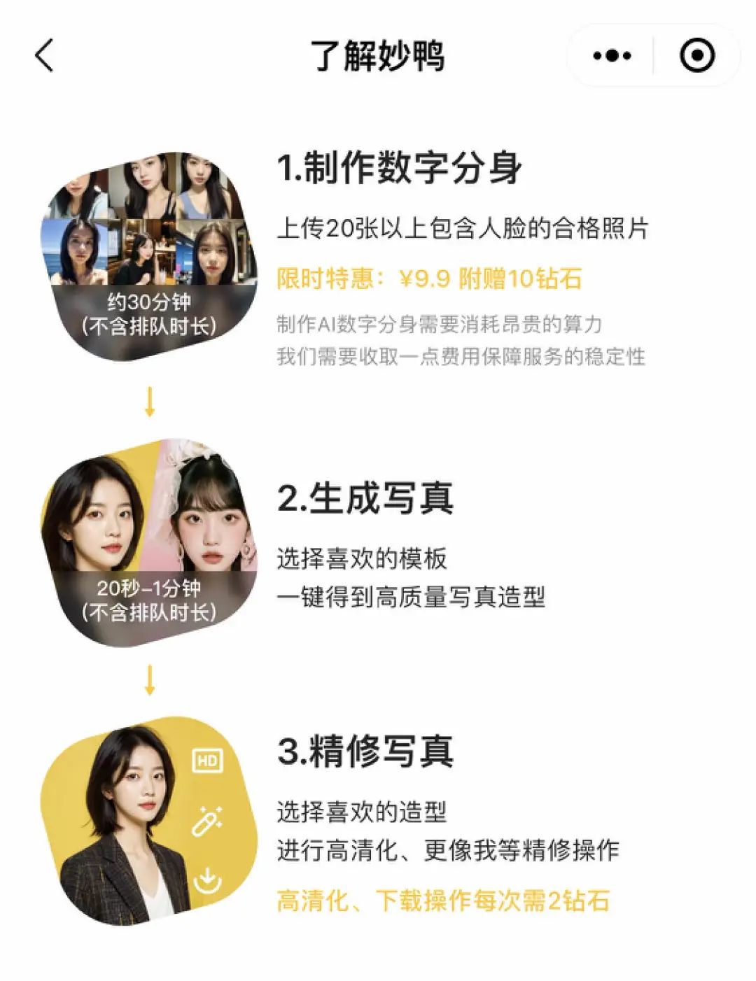 虽然没有技术门槛,但妙鸭使用起来还是有门槛的。