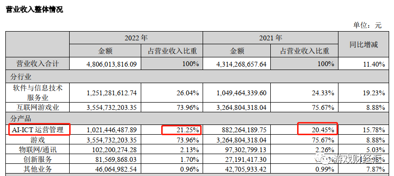 2022年,AI-ICT运营管理收入超10亿,是神州泰岳第二大收入来源,物联网/通讯收入也超过1亿元,但上述业务大多增收不增利。