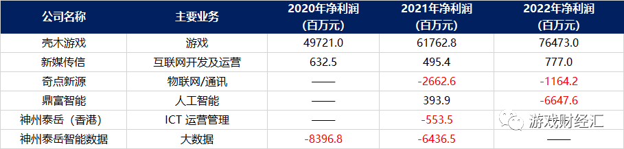 比如,神州泰岳负责人工智能业务的控股子公司鼎富智能2022年收入6600多万元,但净亏损6600多万元,公司负责物联网与通讯业务的控股子公司奇点新源2021年、2022年分别亏损2662万元和1164万元。