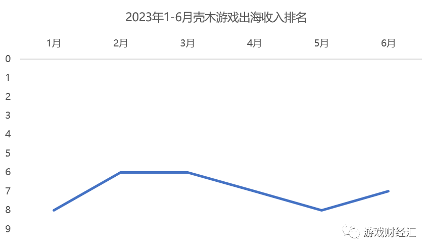 根据data.ai数据,壳木游戏2023年1-6月出海收入排名稳居TOP8以内,甚至超过了游戏大厂网易。
