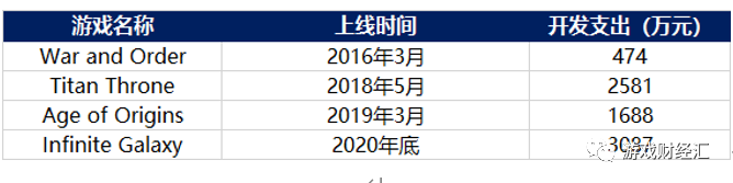 比如,太空科幻题材SLG产品《Infinite Galaxy》于2018年7月立项,耗时三年,总开发支出在3000万元左右。而此前两款爆款产品《Age of Origins》和《War and Order》,开发支出加起来不过2000多万元。