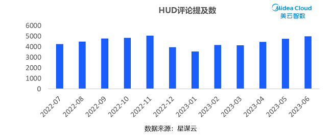 HUD抬头数字显示功能备受热议与关注,根据互联网评价数据监测,该配置用户声音提及量一直处于TOP1的位置,但从装备率以及装车率数据看,该配置并没有十分普及。对已装备该配置车型的用户声音进行详细分析,不少用户评价“抬头显示太拉胯、抬头显示不清晰、抬头显示重影”,这反应HUD抬头显示功能,装备率不高,用户关注度高,但是负面率也较高。