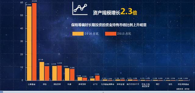 同时伴随着买方市场的结构调整,保险等偏好长期投资的资金持有市值比例上升明显。