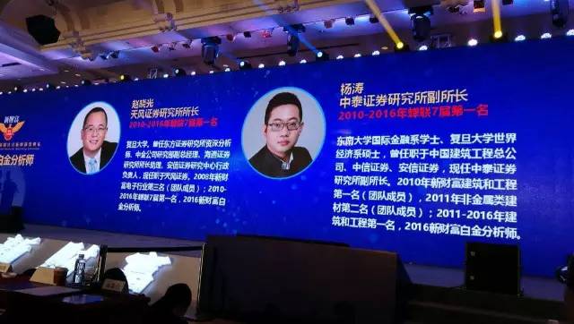 今年的新财富分析师颁奖现场,诞生了两位白金分析师赵晓光和杨涛,两人分别在电子行业、建筑与工程行业连续七年第一名。