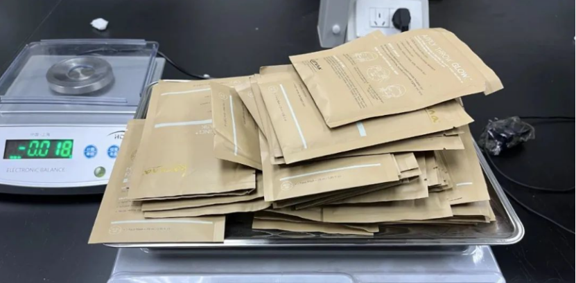 七月中旬,中华人民共和国广州海关(以下简称“广州海关”)在广州白云机场空港口岸进境寄递渠道中,对一票进境快件进行查验时,查获了一箱内含57袋伪装成面膜的液体冰毒,通过称量,共净重1.59千克。目前,该案件已移交海关缉私部门处理。