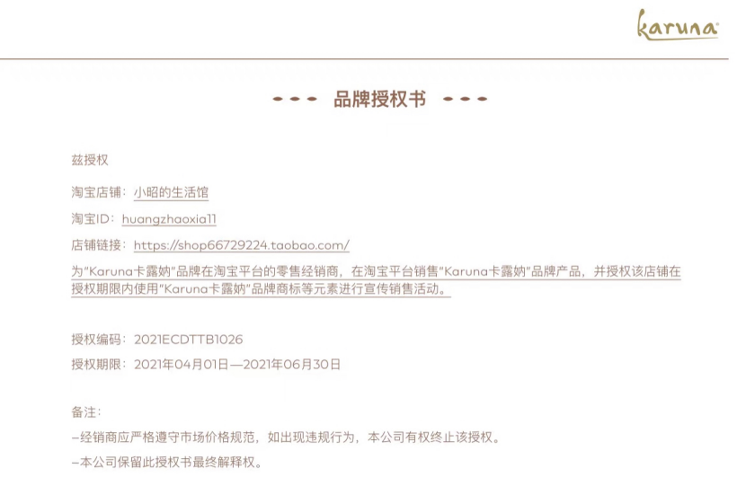 经了解,《化妆品报》发现,Karuna卡露妠品牌在一家名为“小昭的生活馆”的淘宝店铺中有售,且销量较为靠前。