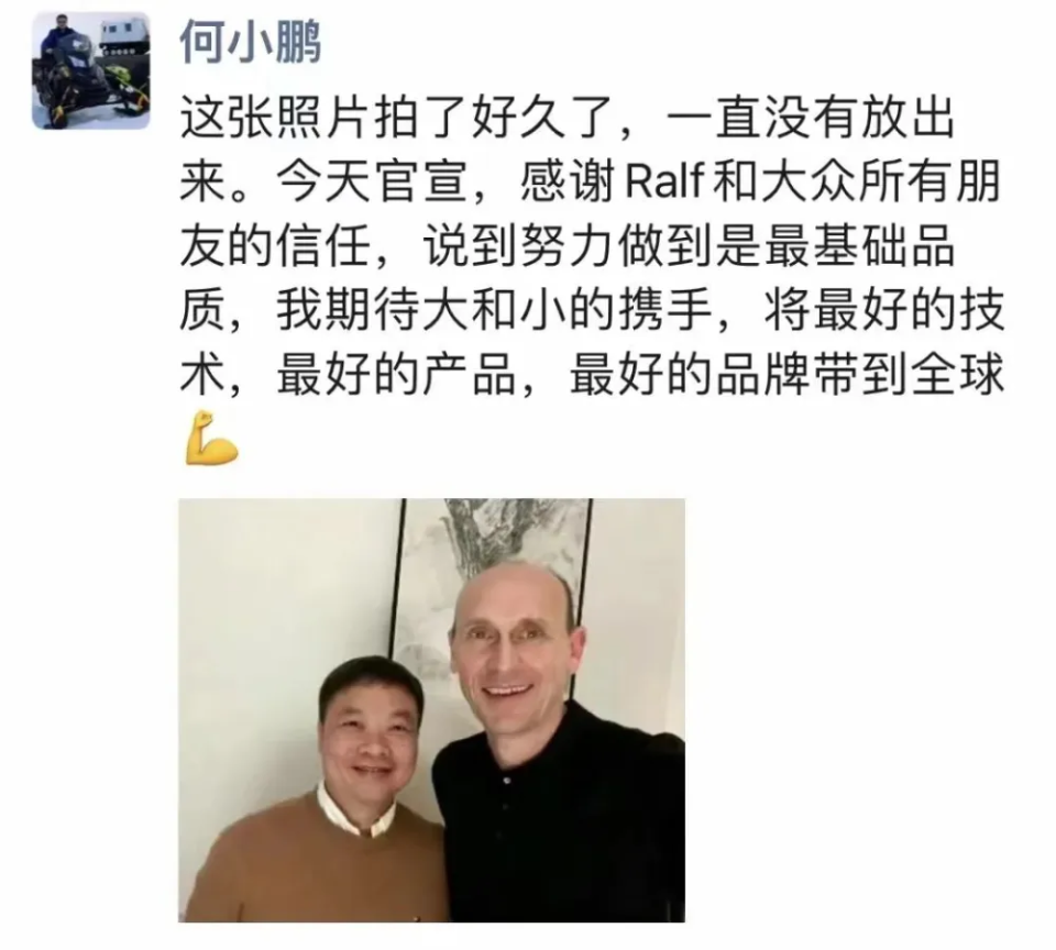 何小鹏发朋友圈官宣合作。