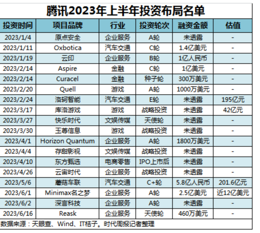 其中,腾讯参与的最大一笔投资是人工智能企业Minimax 2.5亿美元的A轮融资,后者的投后估值或将接近12亿美元,正式升级成为AI领域的独角兽企业。