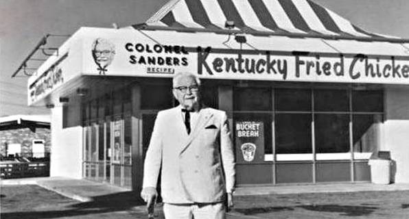 1946 年,山德士上校带着一只压力锅、一个 50 磅的佐料桶,以及一辆老福特开始到处表演炸鸡,推销炸鸡配方,由此开启了肯德基了创世之旅。到 1952 年,第一家被授权经营的肯德基餐厅建立。