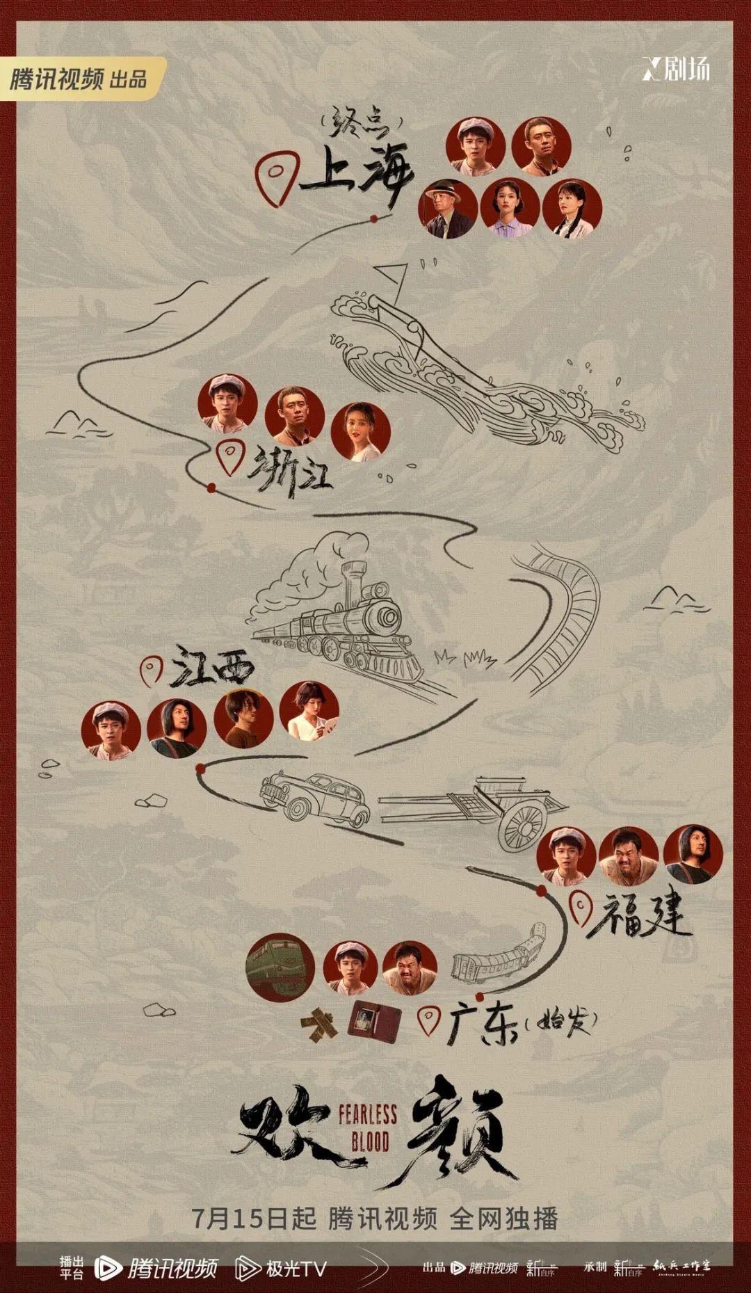 徐兵:一开始是先定了要写个年代戏,又确立了一个少年成长的核。他从南洋过来,因为南洋支持革命的人多,从小没回过祖国,又要迅速成长,第一集开篇我得为他想一个事儿,所以有了带着三根金条和一张照片北上的故事。