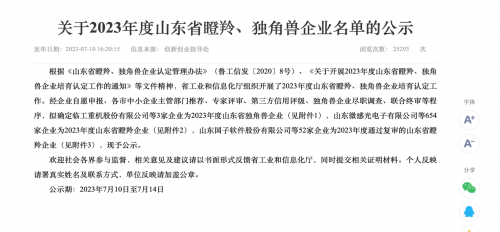 日前,山东省工业和信息化厅公布了2023年度山东省瞪羚企业名单,逢时科技凭借综合实力被认定为山东省瞪羚企业。