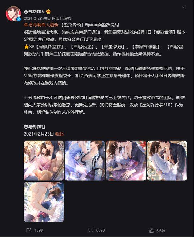 所谓“成人化”应当只作为乙游的一种短期刺激付费方式存在,想长久地运营好一款国乙手游,核心还应该放在对故事、人设、美术的雕琢,以及对同人文化圈子的建设。