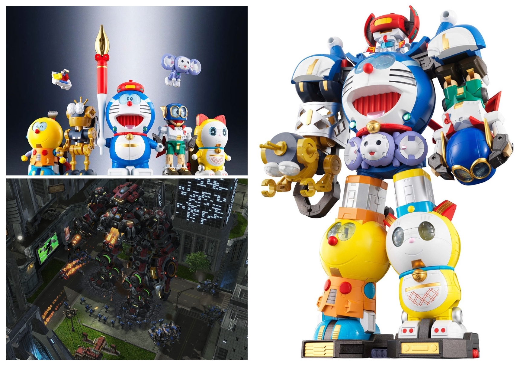 其实,这款玩具是一个与游戏进行互动营销的产物。2014年11月20日,万代南梦宫在掌机3DS和家用游戏Wii U两个平台上,同步推出了一款名为《藤子·F·不二雄明星派对》的游戏。瞧这名字,就知道和玩具有关了。再看玩具发售的时间,2014年11月29日,一股浓郁的营销气息扑面而来。不仅如此,在游戏发售的时候,万达南梦宫还提供了一个“彩蛋”——玩家在游戏的特别关卡中满足一定的条件即可获得机器人部件,集齐所有部件后就可以让“合体”机器人在游戏中出现了。此前并非没有过这种游戏和周边产品同步出炉的玩法,但通行的惯例大多就是把几个游戏角色做成一组公仔,可零售、可套装而已。如果采取那样的套路,就不够惊艳了。