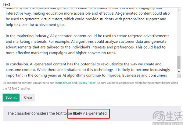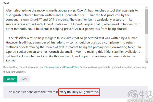 此前OpenAI在推出这款AI文本检测器时,其实外界的期待值曾颇高,并希望它能够与ChatGPT上演一出“猫鼠游戏”。而这款公布的使用也一点都不复杂,在检测过程中用户只要将需要检测的文本复制到检测器上,就可以检查内容是否为AI生成,而且也不限定文本内容的种类。
