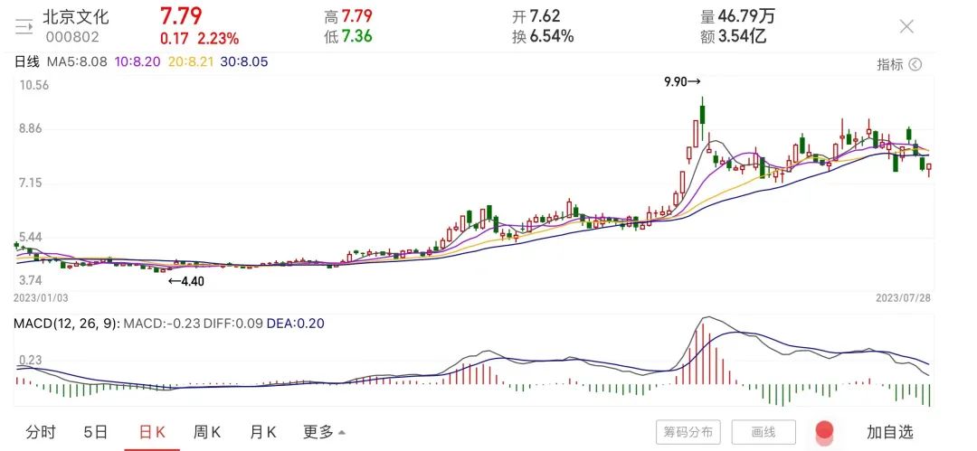 7月21日,北京文化股价跌停;7月24日,在该电影上映后第4天,北京文化开盘一路拉升,在5分钟就达到了涨停板,但接下来,其股价则出现了涨跌互现局面。