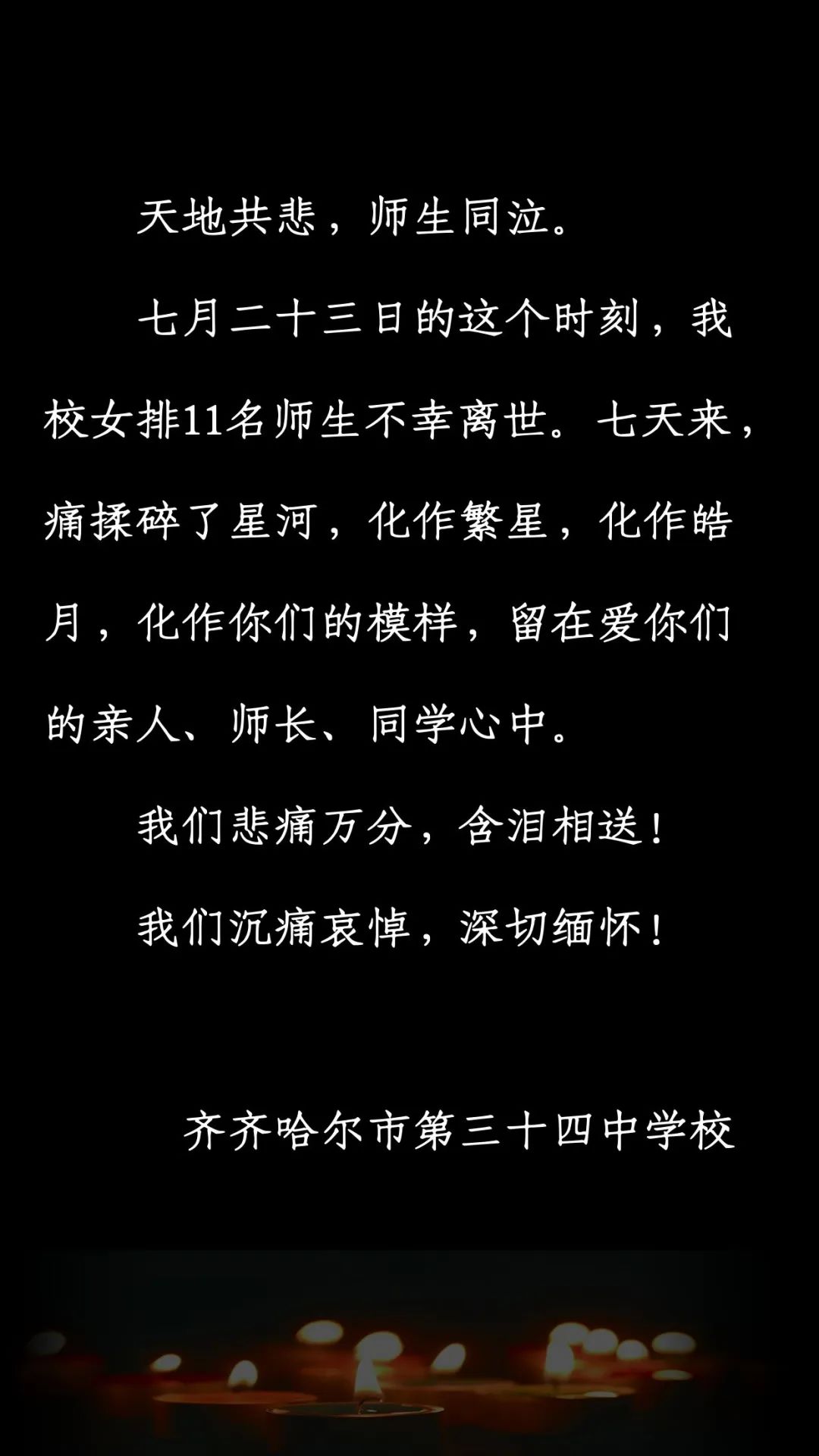 齐齐哈尔市第三十四中学校发布悼文